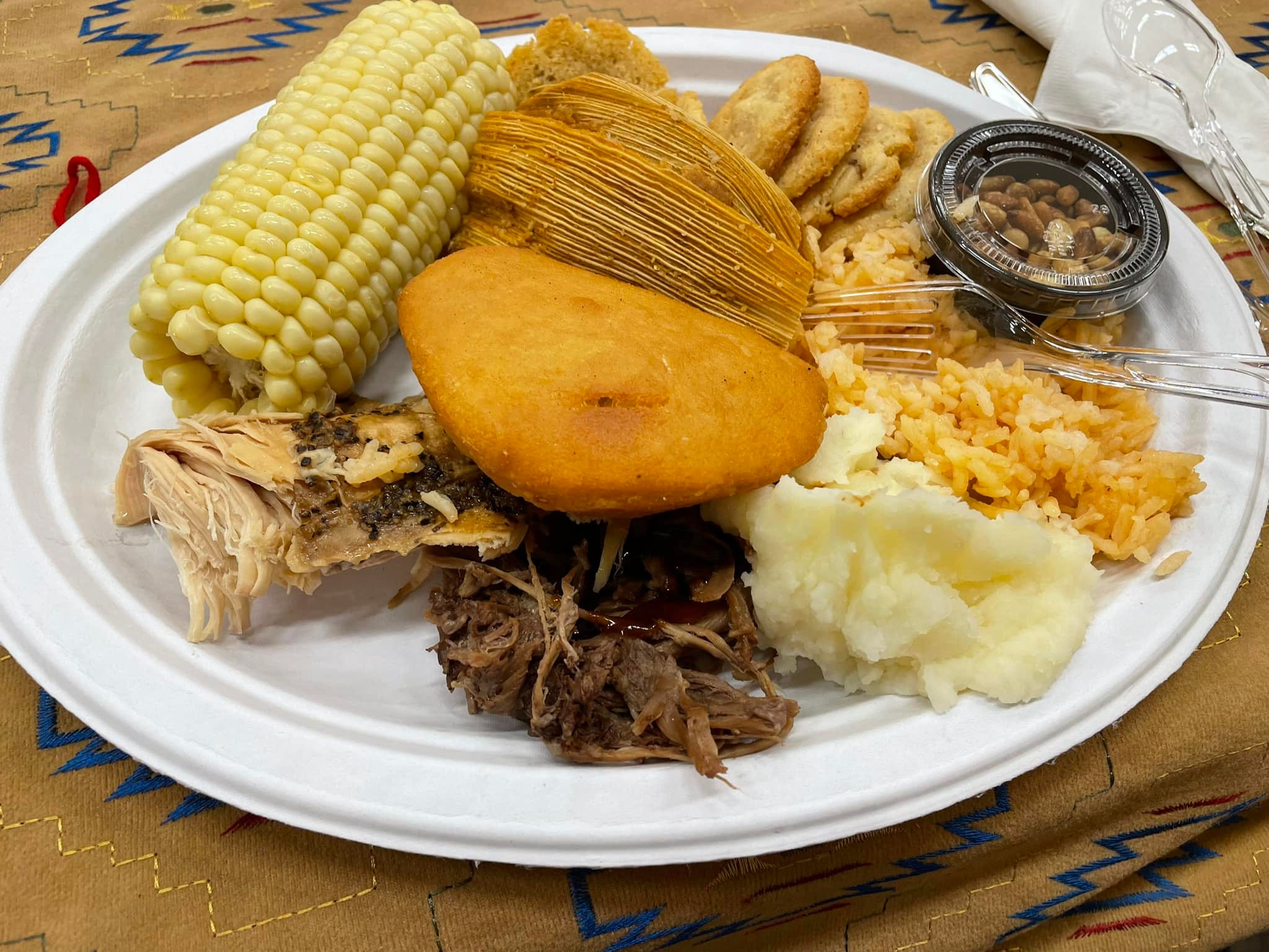 Yum! Thank you to chef Willie Pink, to Roy Mathews Jr. for the BBQ (yes, the Mathews family has been serving the pit BBQ at Malki for 60 years), to Tom Long for the pies, and to Ernest Siva for offering his favorite doughnuts for dessert. Thank you to the crew from Morongo Cultural Heritage Department for all the help in the kitchen and with serving. (Pat Murkland Photo)