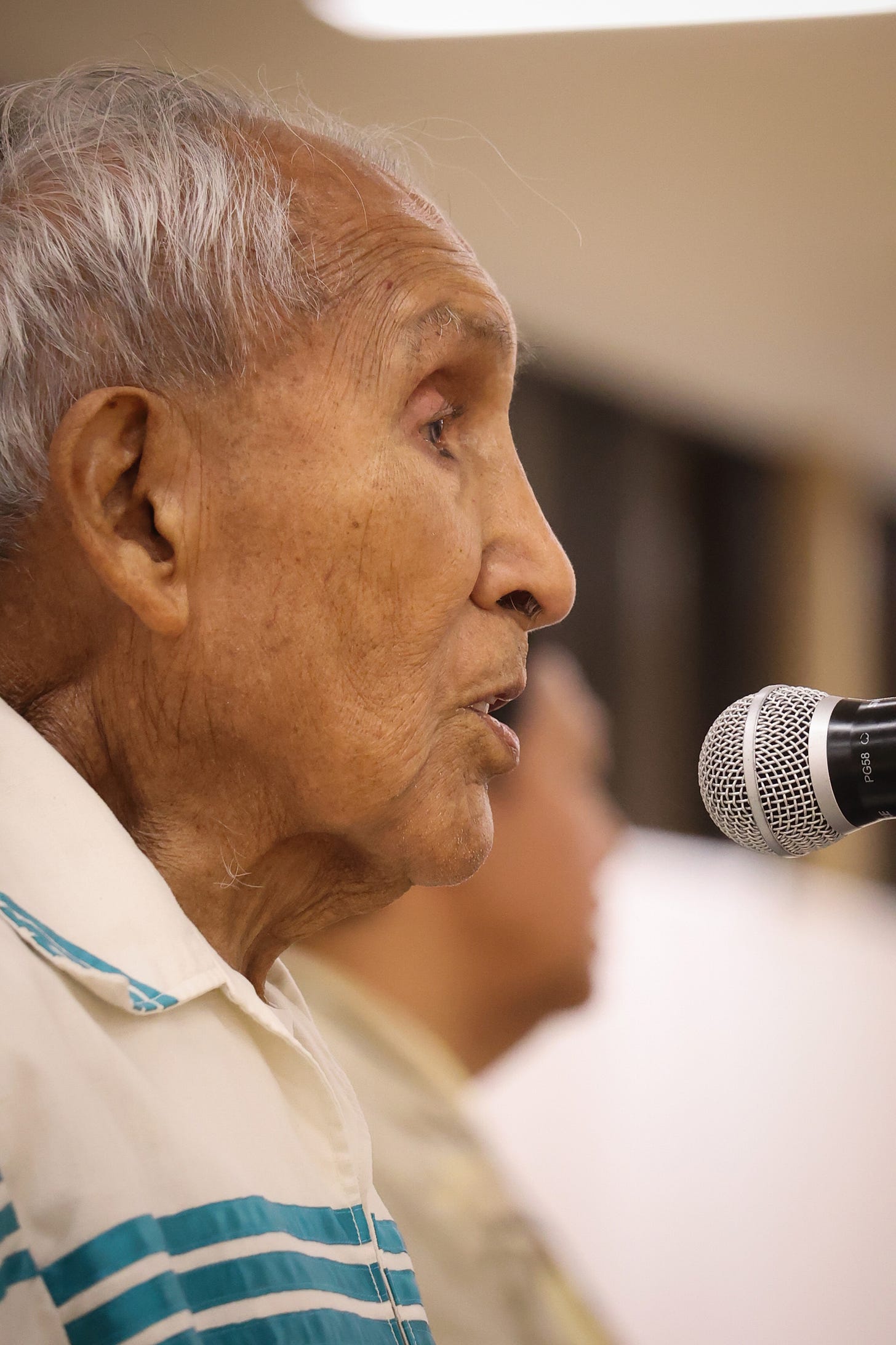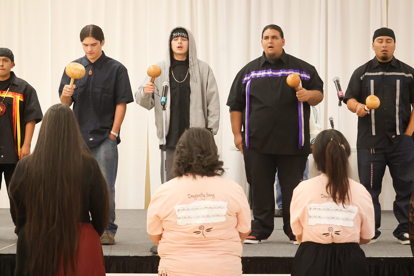 Center leader Ernest Siva sings the Dragonfly Song to close the Dragonfly Gala. (Carlos Puma photo)